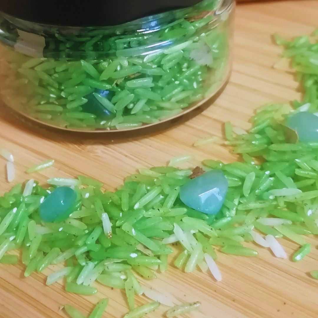 - Polvere di mica e colorante alimentare verde: Il colore verde è associato alla fortuna, alla stabilità finanziaria e alla crescita. La polvere di mica aggiunge una scintilla energetica che amplifica l’attrazione della prosperità.