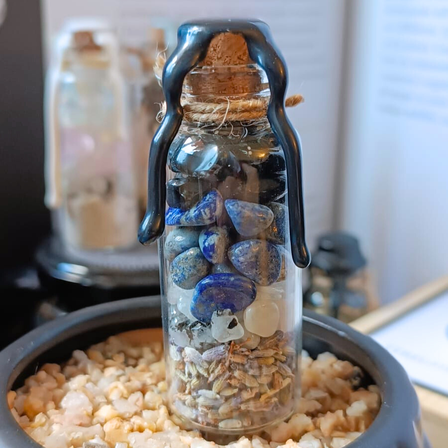 Colloca la Spell Jar sul tuo altare o in uno spazio sacro dedicato alla meditazione e ai rituali. Portala con te come amuleto nei momenti di introspezione o quando desideri protezione spirituale e chiarezza.