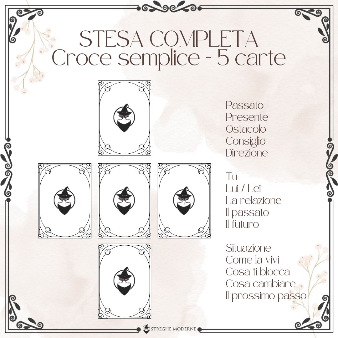 Con la stesa a croce semplice, potrai analizzare un momento complesso da più angolazioni, comprendendo non solo cosa sta accadendo, ma anche perché e cosa puoi fare.