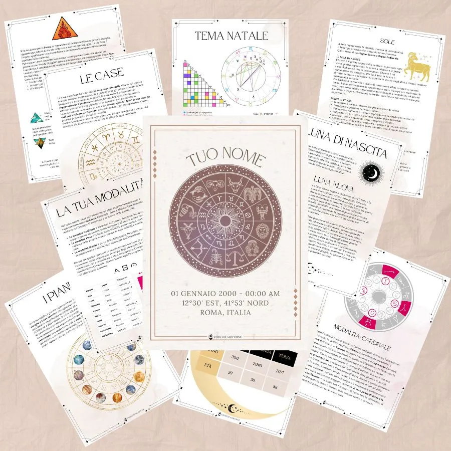 Questa Carta Astrale di più di 30 pagine contiene: